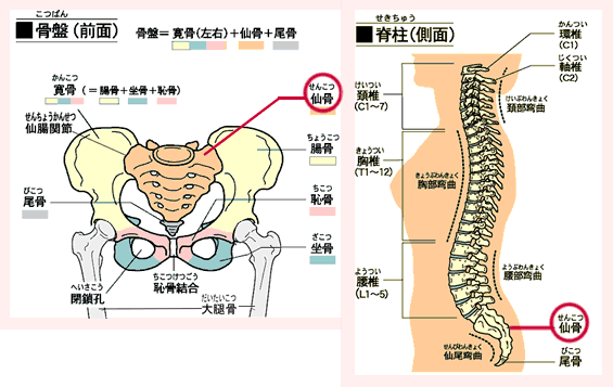 「仙人の骨」と書き、英語でもsacrum(セイクラム)=sacred bone(聖なる骨)と呼ばれるように、昔から不思議な力をもつ骨と認識され重要性されてきました。